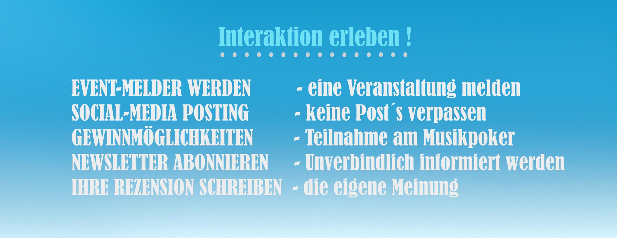 Interaktive Möglichkeiten ( Event-Melder - Social Media Posting - Gewinnspiele - Newsletter - Rezensionen uvm.)