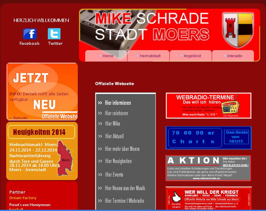 Mike zeigt auch bei Facebook Präsenz. Das Profil ist jetzt neu gestaltet, mit weniger Informationen ausgestattet. Relevante Informationen finden Sie überwiegend tagesaktuell auf der offiziellen Webseite.